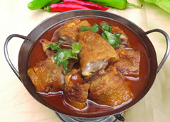 野猪脚:猪脚又叫猪蹄、猪手。分前后两种,前蹄肉多骨少,呈弯形,后蹄肉少骨稍多,呈直形。中医认为猪蹄性平,味甘咸,是一种类似熊掌的美味菜肴及治病“良药”。